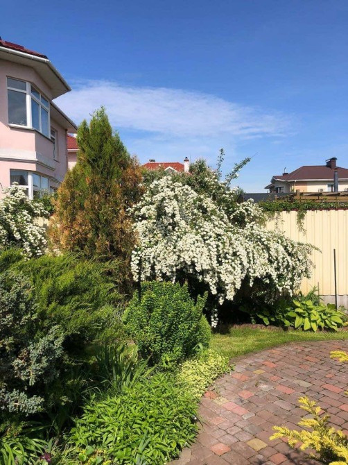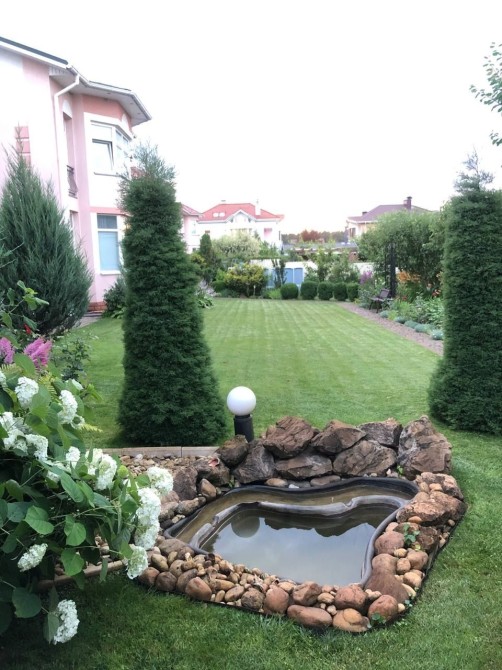 Дом 2 этажа, 140 м2, под чистовую отделку- разведена электропроводка, отопление газовый котёл подключено, все коммуникации разведены, остались только отделочные работы. 2 санузла, 4 комнаты, гараж. Участок 6 соток с шикарным ландшафтным дизайном-газоны, полив, плодоносящие деревья, кусты, цветы ( все на фото видно).