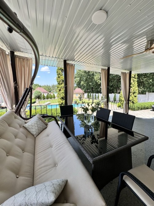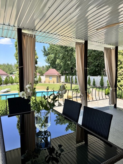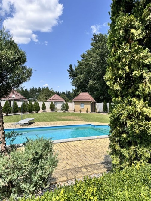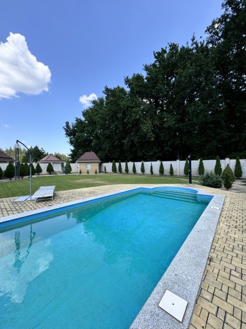 На ухоженном участке с ландшафтным дизайном есть большая беседка,навес на две машины,два хозпомещения и шикарный глубокий БАССЕЙН с подогревом воды и системой очистки.
