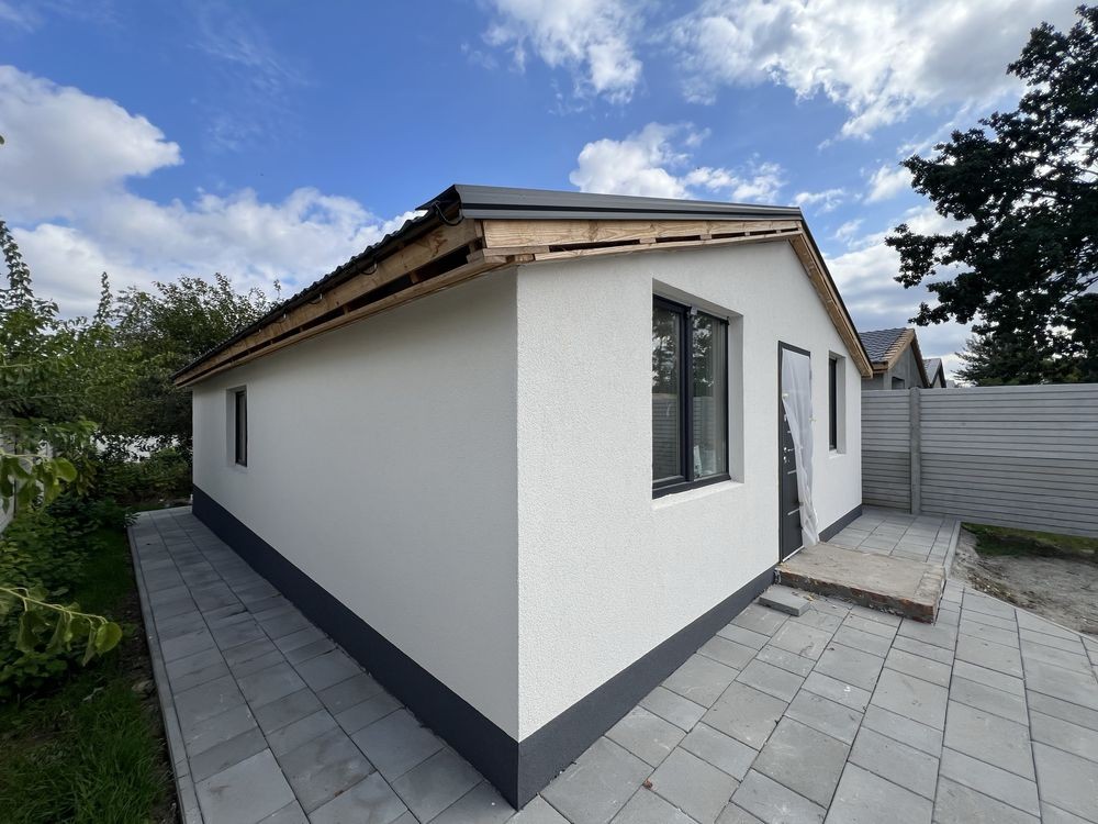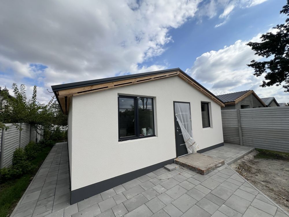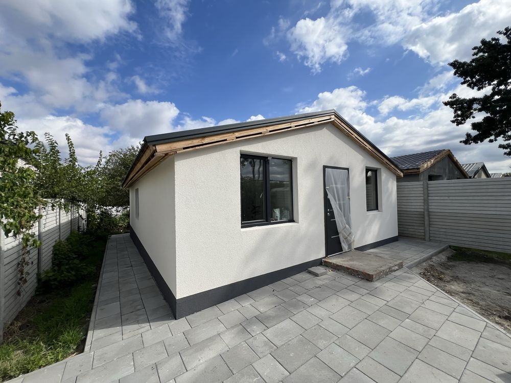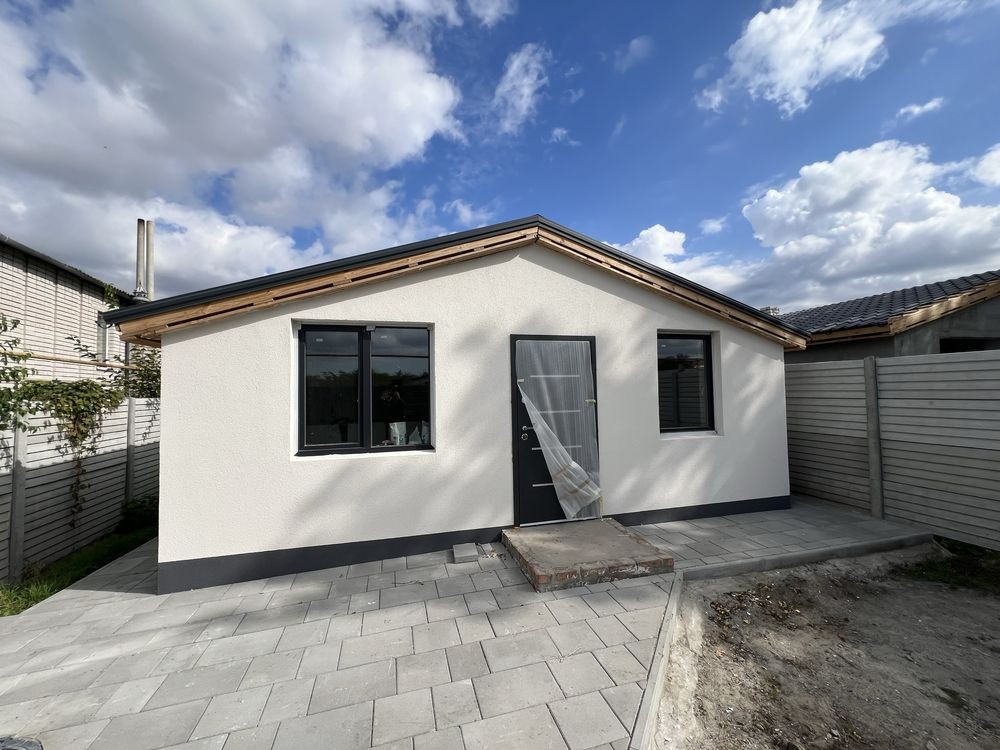 Дом с ремонтом 60м² участок 5 соток 3 спальни санузел кухня-студия . Выполнен из 400 газабетона фундамент ленточно монолитный 1 м стены белый кирпич окна Rеhau трех камерные крыша металачерепица утепление 200 , яма септик , скважина 26 метров ,электричество 380 V 16 кВт теплый пол натяжной потолок сан узел кафель . Ремонт будет завершен под ключ без учета мебели. Стартовая цена при завершении ремонта 49000$. Тел 06*********77