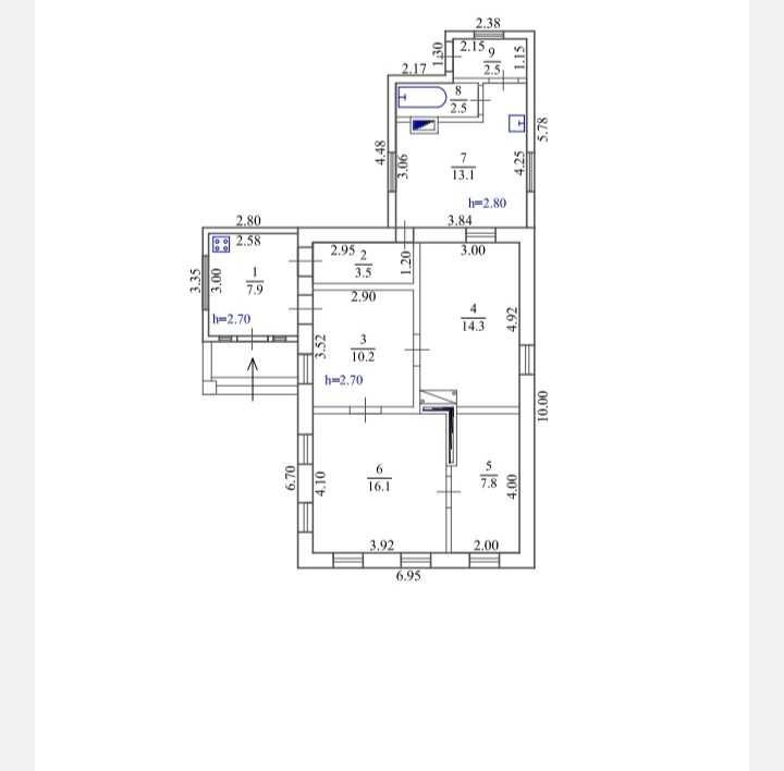 • 5 комнат + кухня+ ванная комната