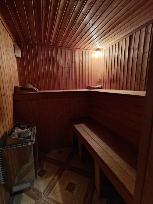 На участке есть сауна с большим спортзалом .