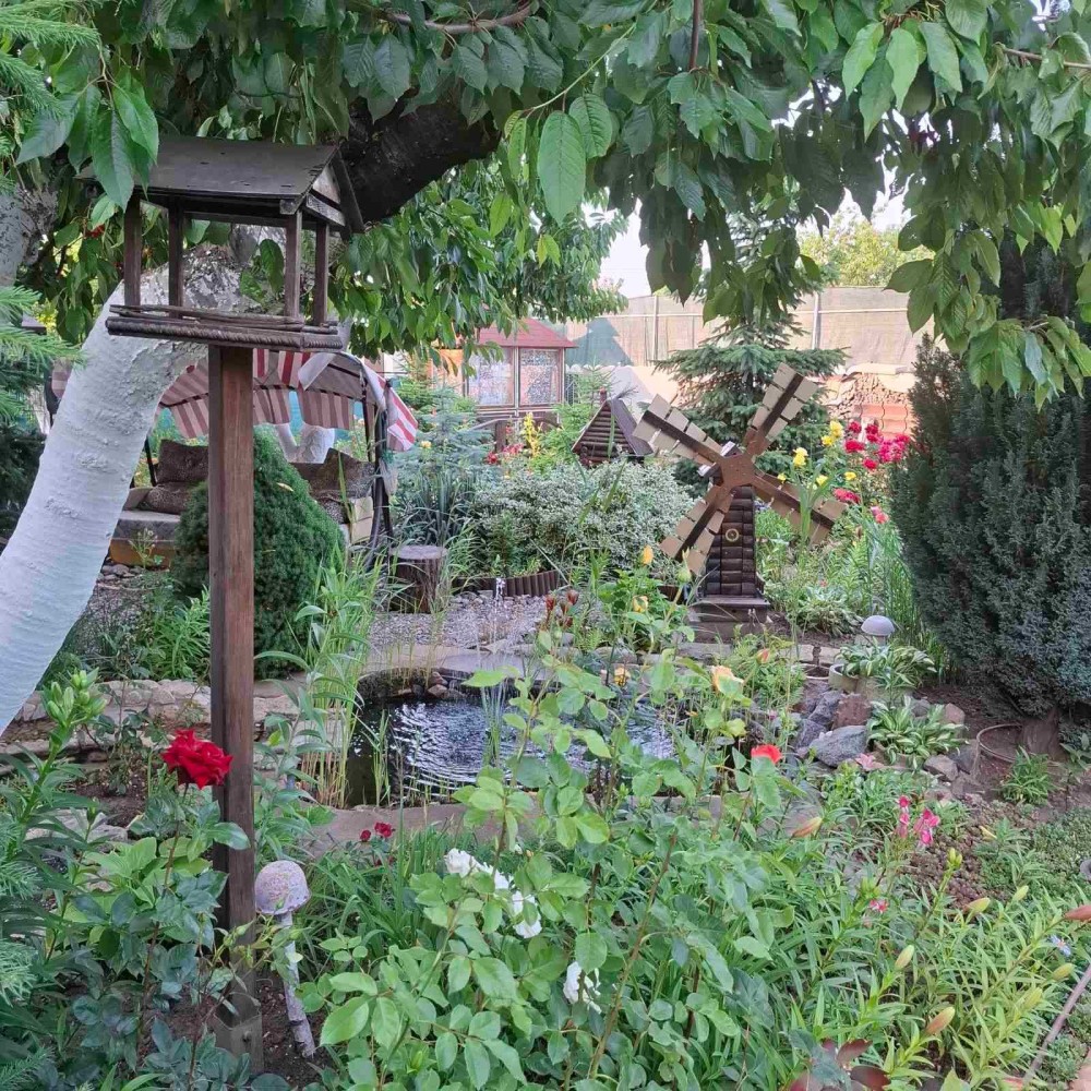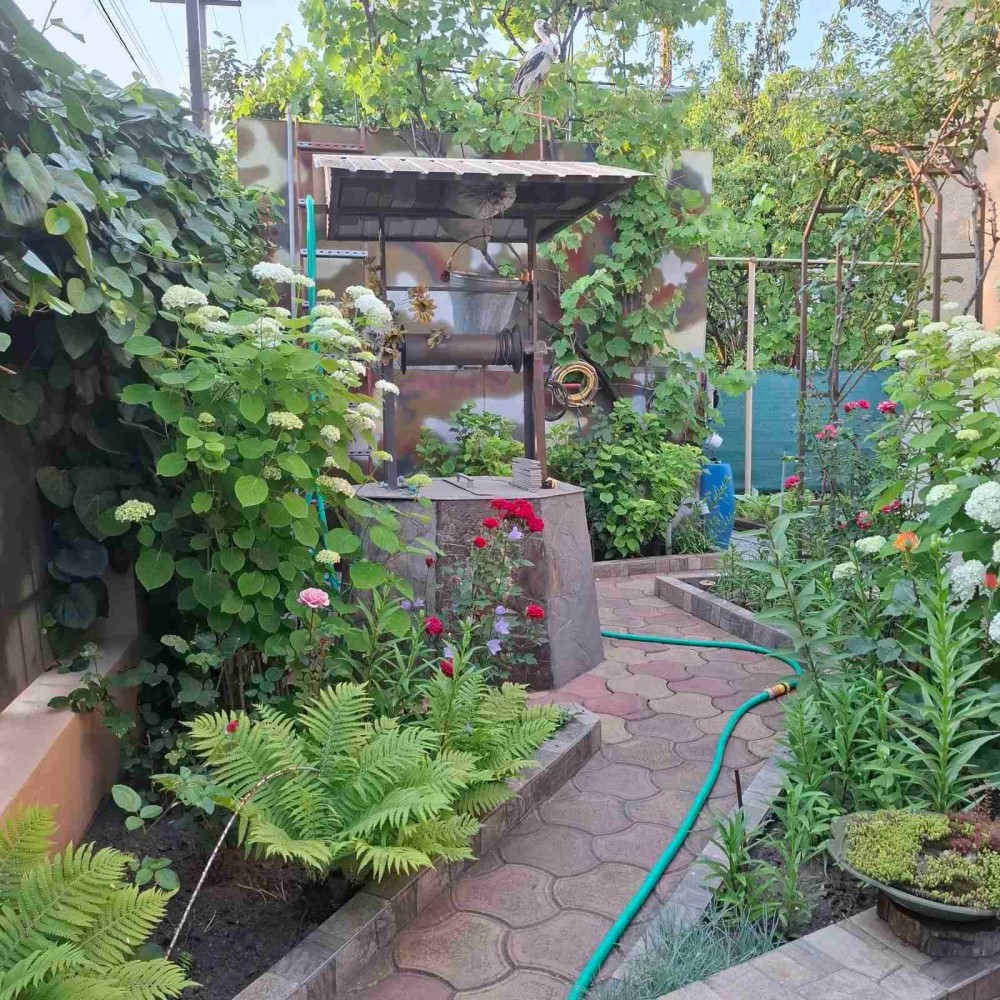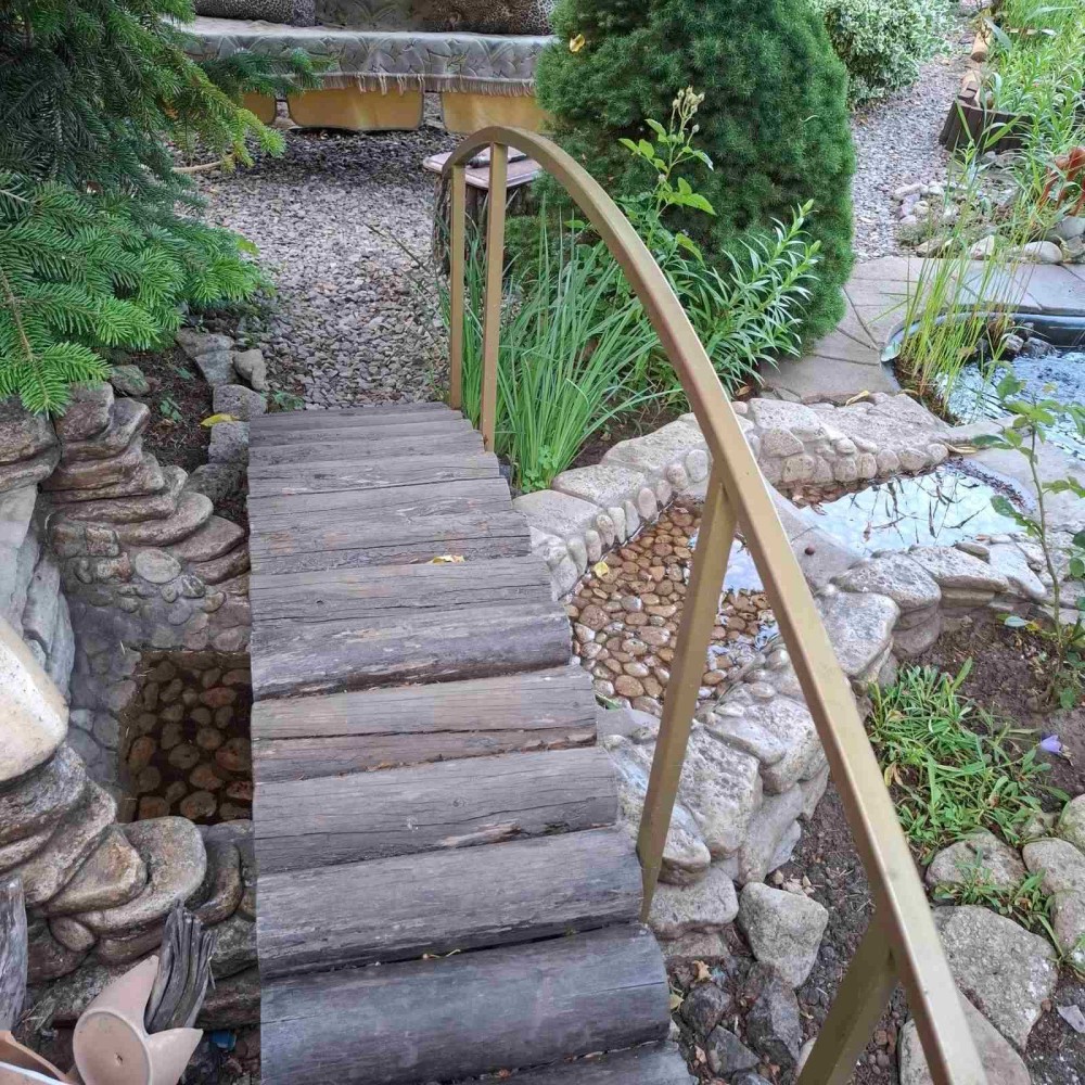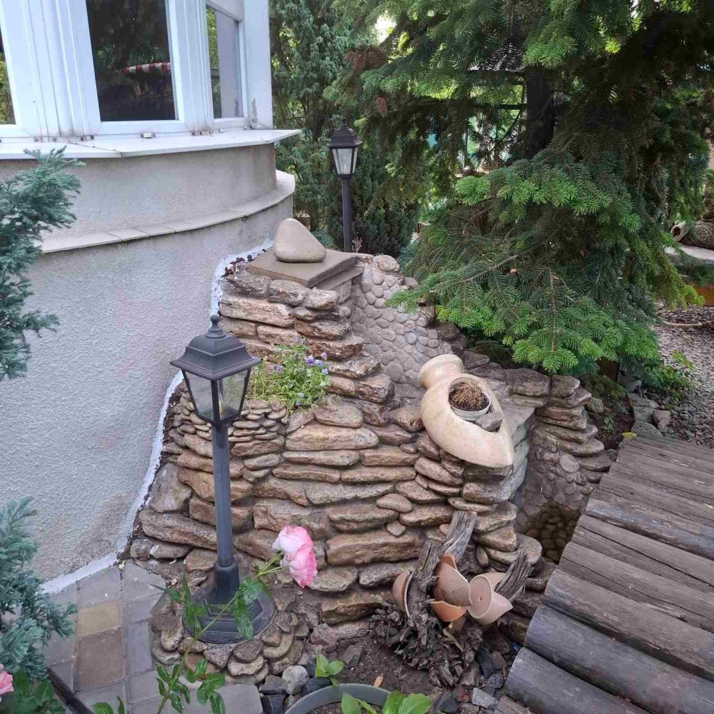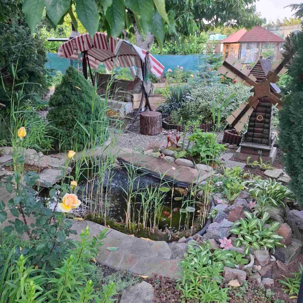 Участок 6 соток огорожен, ландшафтный дизайн, беседка, пруд.