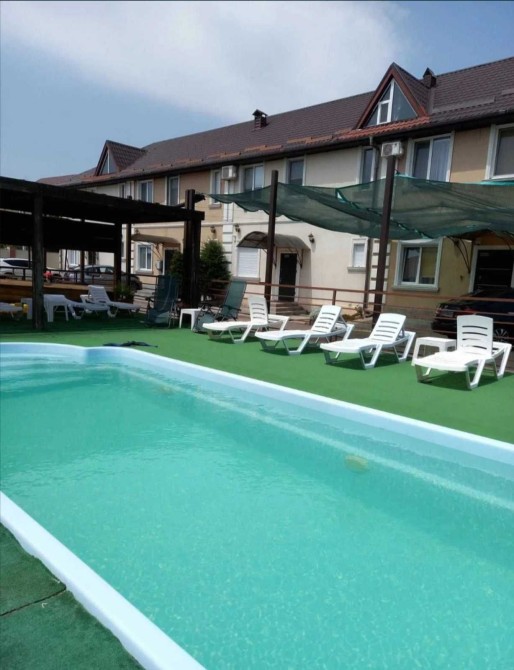 Продам гостиницу в Фонтанке! 1200 м.кв. 2 этажа, 4 входа, 2 въезда, 5 кухонь, 30 номеров с санузлами, участок 10 соток, госакт. 475000$ 1 вход- 2 кухни, 6 комнат, 3 санузла, 2 этажа. 2 вход-  кухня, 3 комнаты, санузел, 2 этажа. 3 вход- кухня, 15 комнат, санузел. Теплые полы, комнаты по 15 м.кв., потолки 3 метра, 6 котлов, резервуар на 3 куба воды, камеры видеонаблюдения, зелёная зона, до моря 500 метров, в каждом номере плазменный телевизор. 0961302539 0500702081