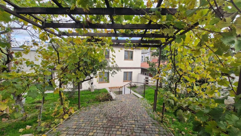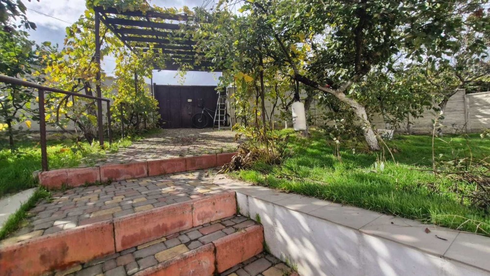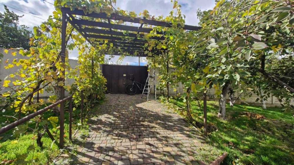 За домом есть хозяйственный постройки на всю длину дома. Во дворе летний душ с ёмкостью и новая арка для винограда.