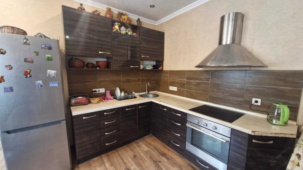 Установлена кухонная мебель. Удобная деревянная лестница на второй єтаж.