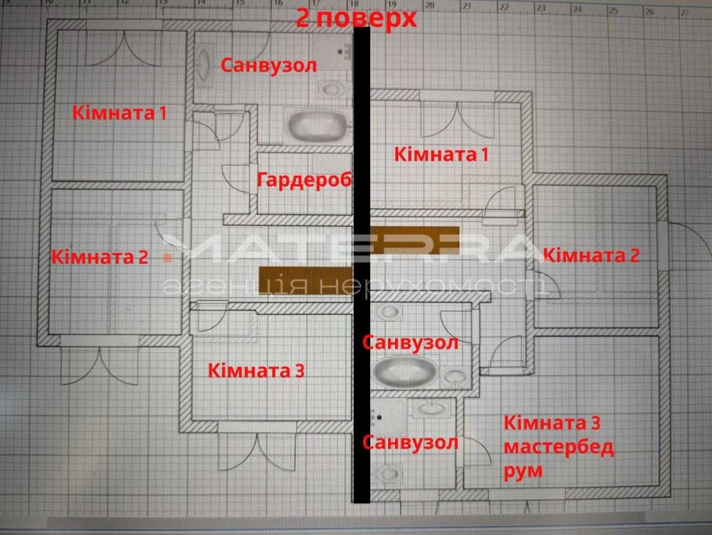 2-й поверх: три кімнати, санвузол, гардероб.