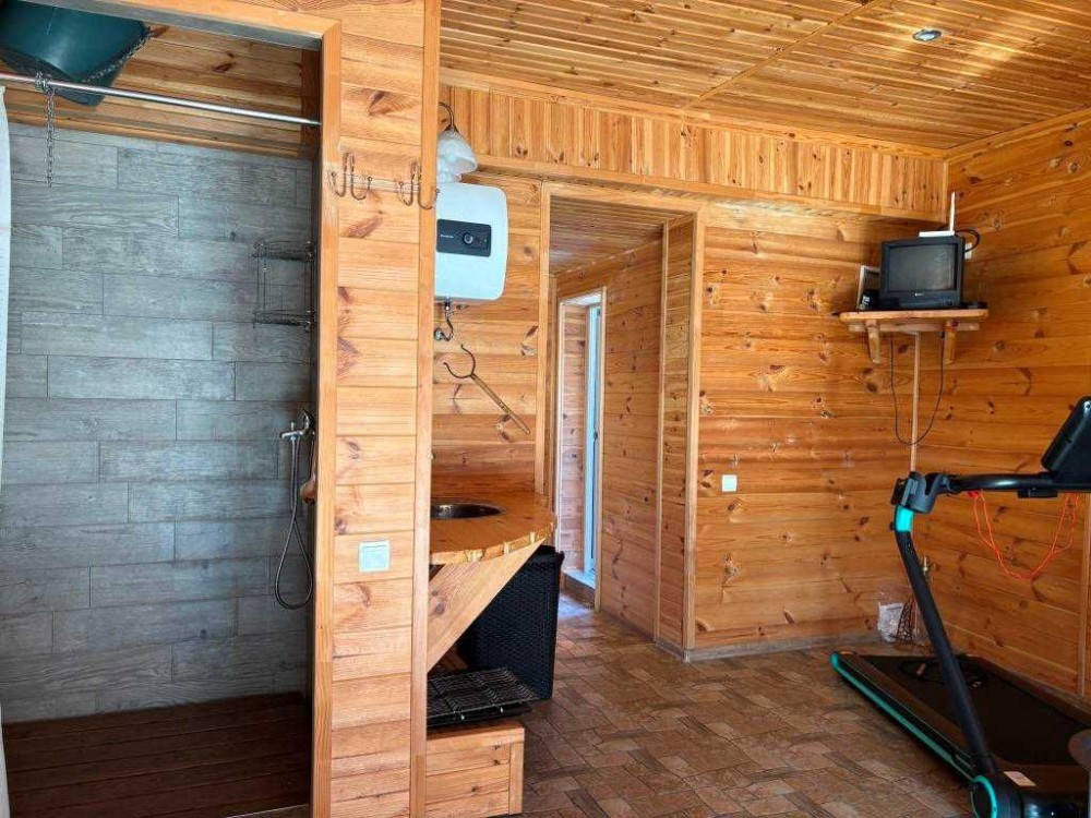 Баня з каміном і душем. Вихід з двору до водойми.