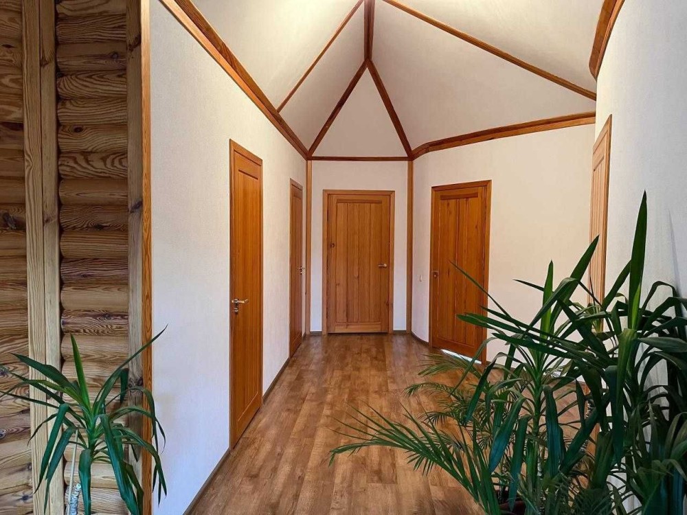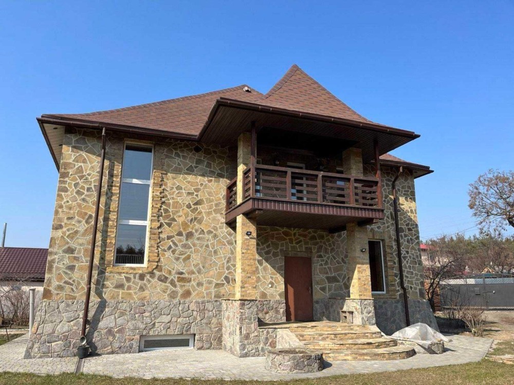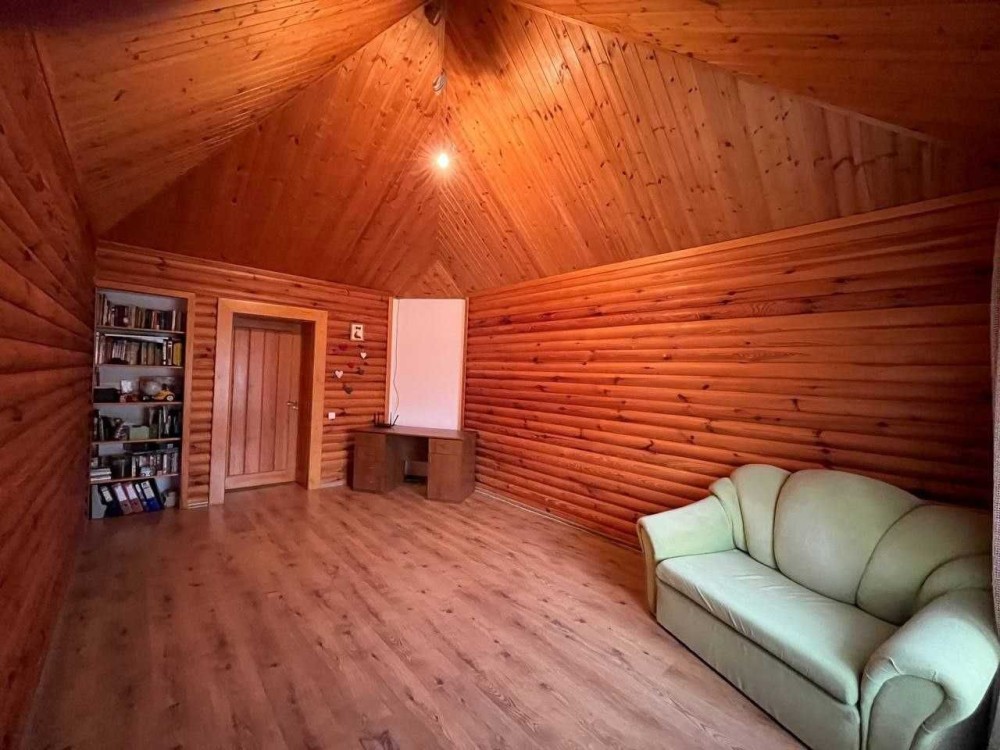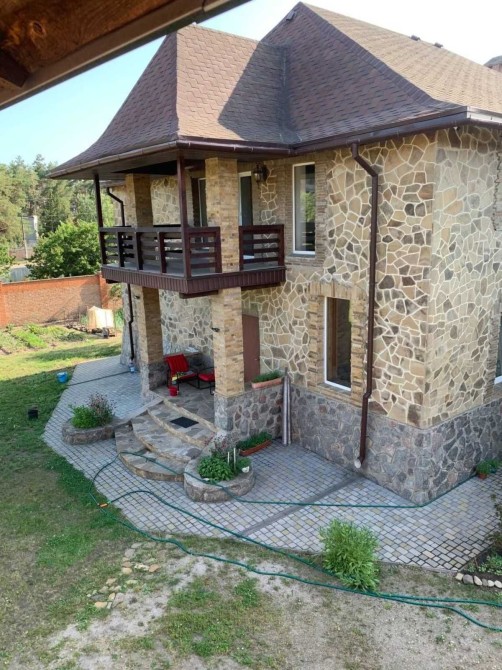 Продам двоповерховий цегляний будинок 360 кв.м в 5 км від міста біля соснового лісу. Земельна ділянка 12,9 соток. На першому поверсі знаходиться камінна зала з кухнею, санвузол, вітальня. Другий поверх- три спальні кімнати, гардеробна, ванна, великий балкон. Цокольний поверх: топочна з двома котлами(газовим та твердопаливним) сауна, туалет з душовою, басейн, кімната для відпочинку, комора. Можливий торг!код:84186