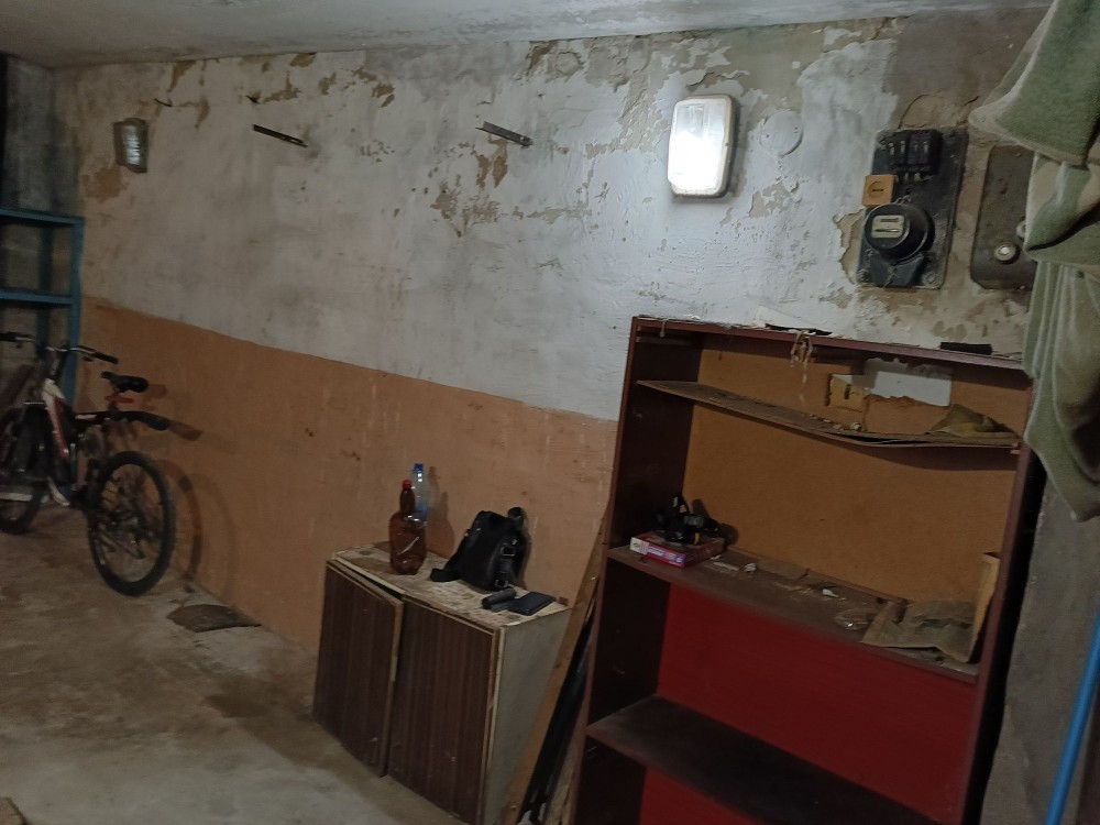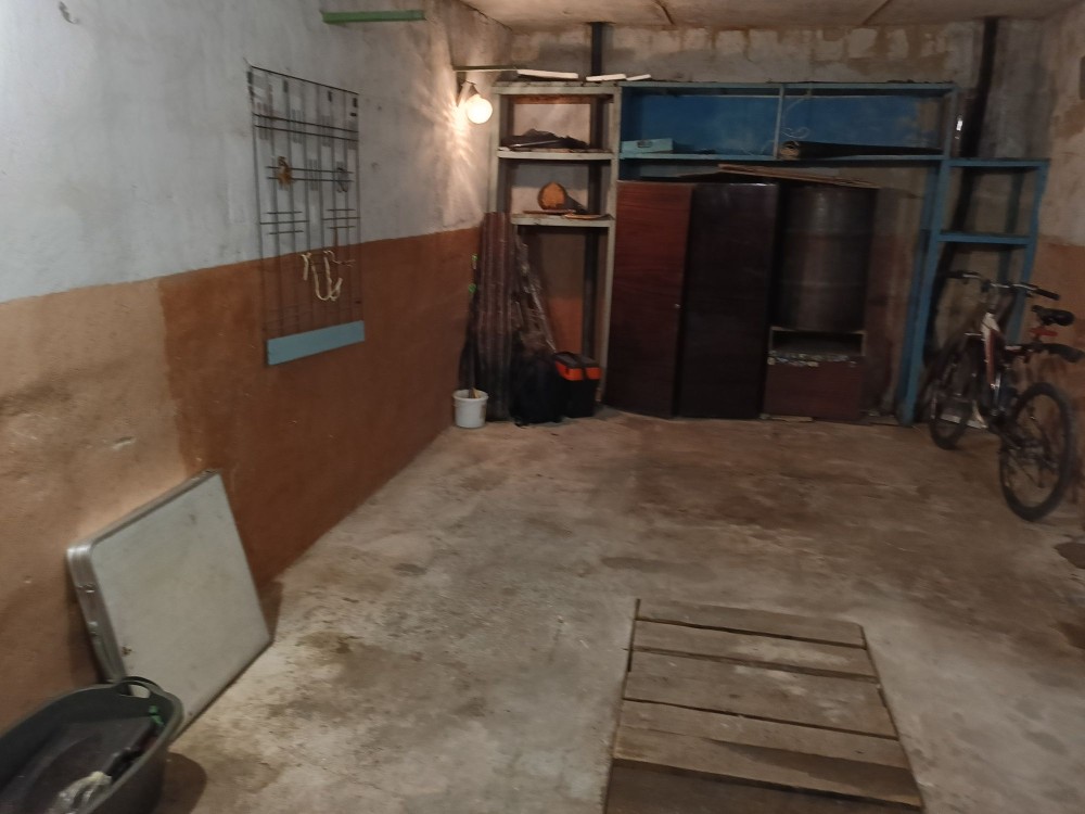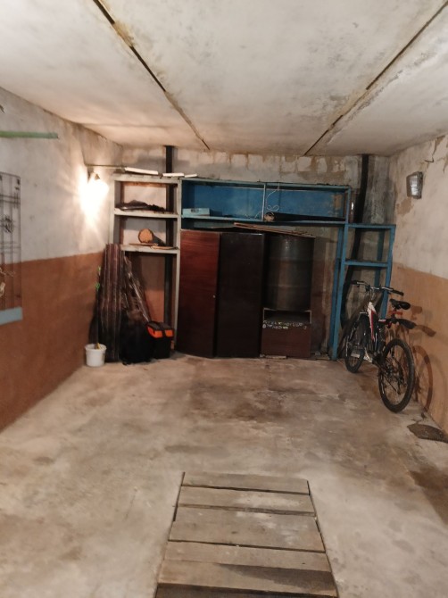 Металевий, підлога бетонна, утеплений керамзитом, є електрика. Великий погріб: 2 приміщення + прохід. Територія охороняється, вивозиться сміття, є естакада. Від власника. Торг.