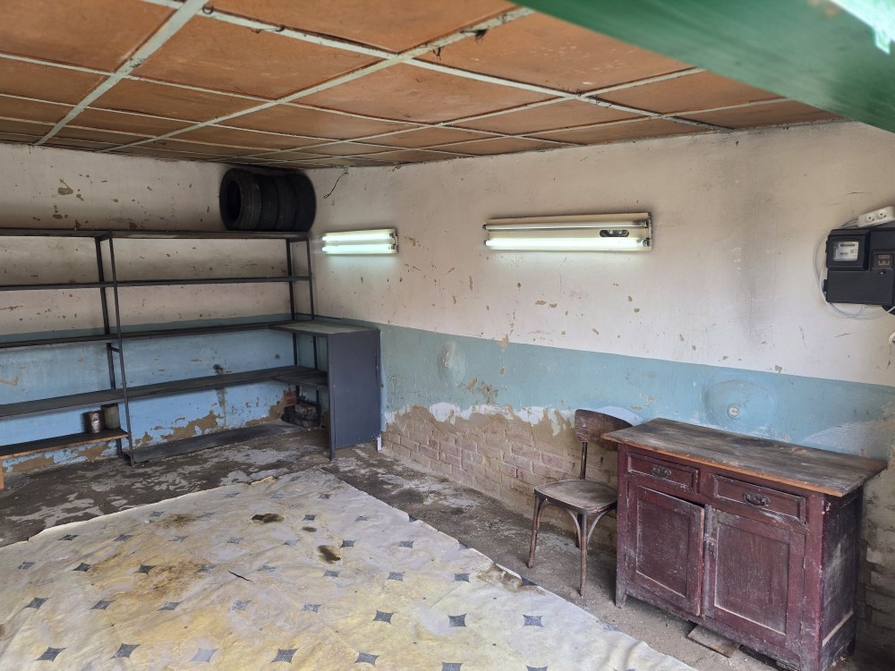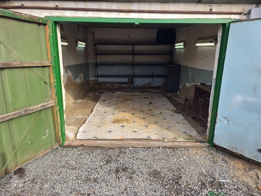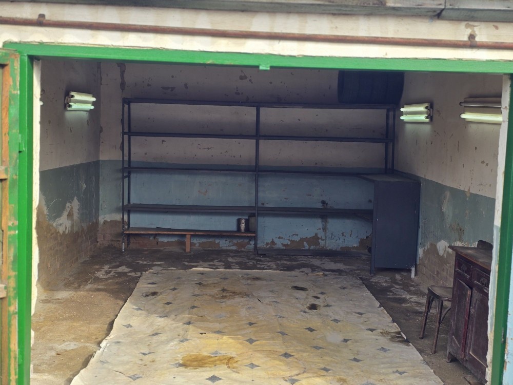 Гараж пошкоджений вибухом 26.04 Погнути ворота, покрівлю треба знімати,рехтувати знов ставити. Гараж порожній. Підвал,оглядова яма ціли. Вхід 220в.цілий. Підвал глибокий, сухий,перекрит новими,пустотними плитами. Розмір на треть гаража,оглядова яма 4м. Можливо на цьому місці будувати капітального більшого за площею гаражу.(мабуть у мірний час) Міцний капітальний гараж зліва не пострадал. Пошкоджений гараж можу вивезти, щоб не заважал.
