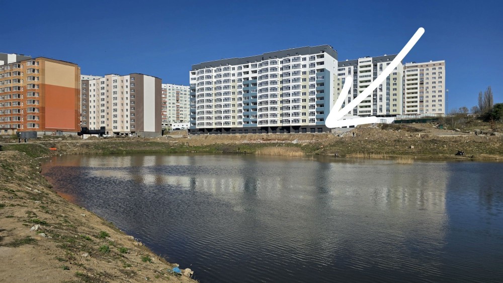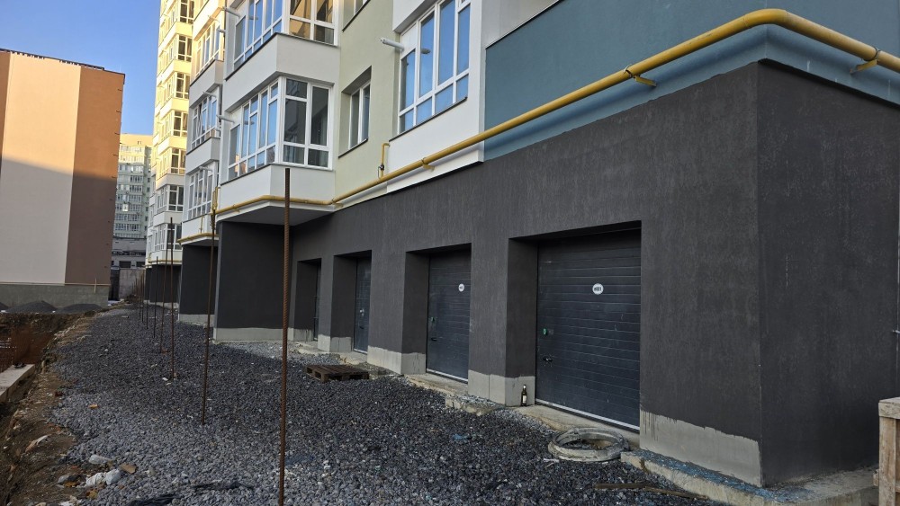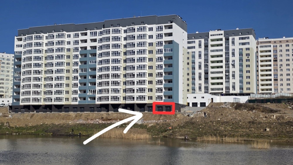 Вид гаражів на штучне озеро, що дає можливість їх використовувати як комерцію (кафе, магазин, тощо). Ніяких забудов вже не буде.