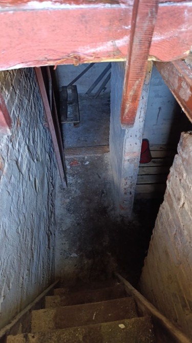 Підвальне приміщення на весь гараж: оглядова яма, погріб розділений на два відсіка(для зберігання продуктів). Продухи є, сухий.