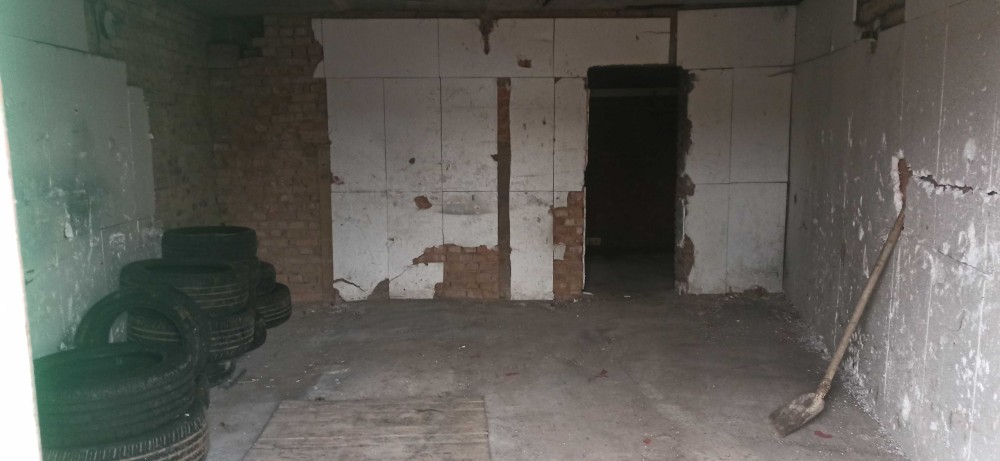 Гараж пошкоджений вибухом 26.04 Погнути ворота, покрівлю треба знімати,рехтувати знов ставити. Гараж порожній. Підвал,оглядова яма ціли. Вхід 220в.цілий. Підвал глибокий, сухий,перекрит новими,пустотними плитами. Розмір на треть гаража,оглядова яма 4м. Можливо на цьому місці будувати капітального більшого за площею гаражу.(мабуть у мірний час) Міцний капітальний гараж зліва не пострадал. Пошкоджений гараж можу вивезти, щоб не заважал.