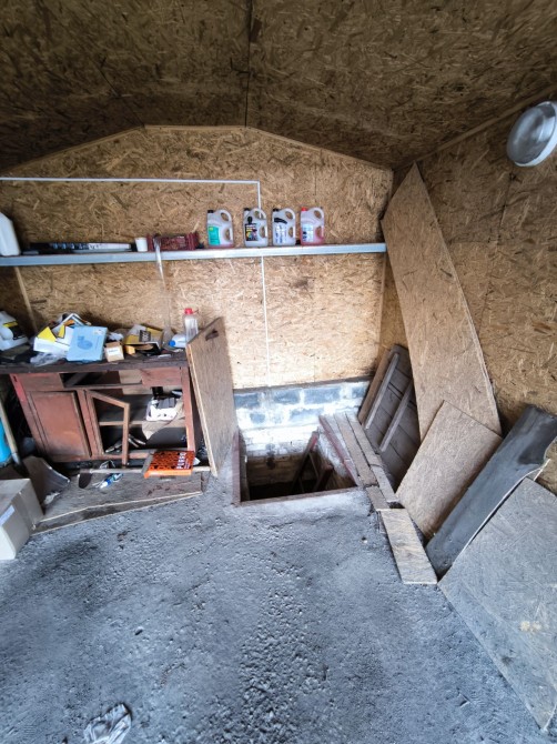 - Великий сухий погріб з полицями та відділеннями для овочів і консервації