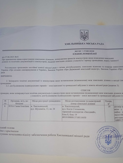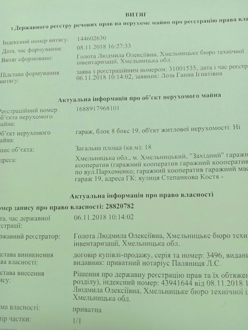 Всі документи на гараж в повному порядку:вся документація оновлена,присвоєний кадастровий номер,приватизований гараж і земля під гаражем(є акт відторгнення землі і оформлено присвоєння власнику(фото документів додається)).