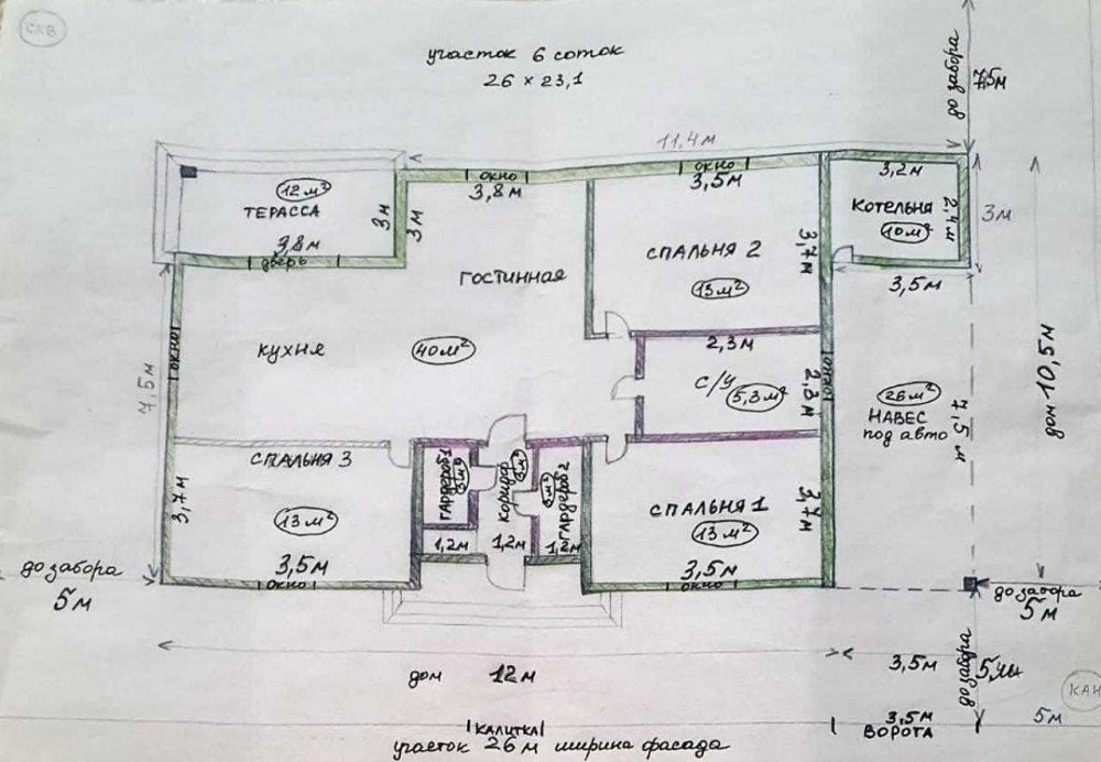 - Площадь участка: 6 соток