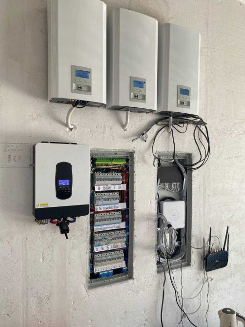Действующий камин. Резервуар воды.Есть вывод под солнечные панели. Два котла. Трехфазовое электричество .Генератор.