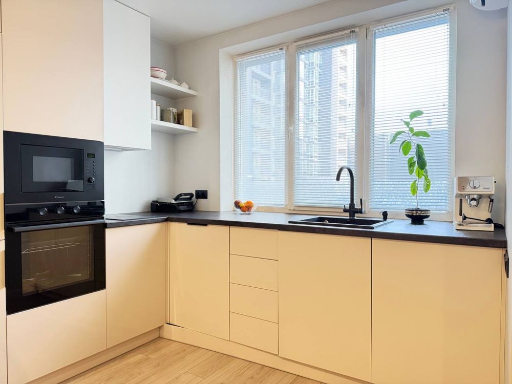 велика кухня-вітальня 20 м² та дві окремі роздільні кімнати — зручно для сім’ї або під оренду.