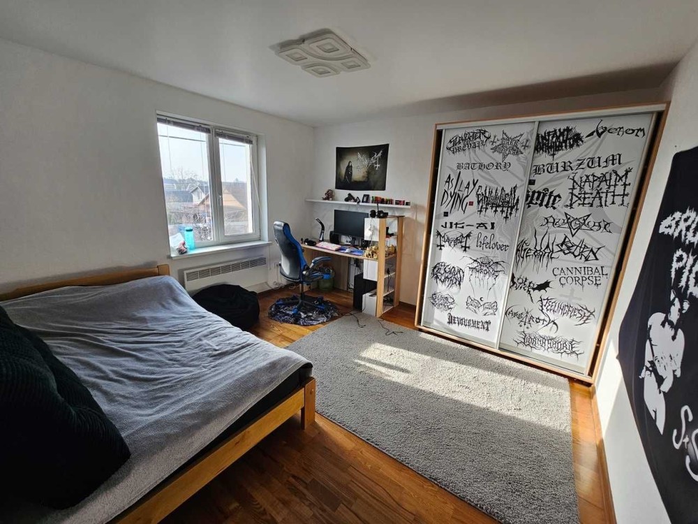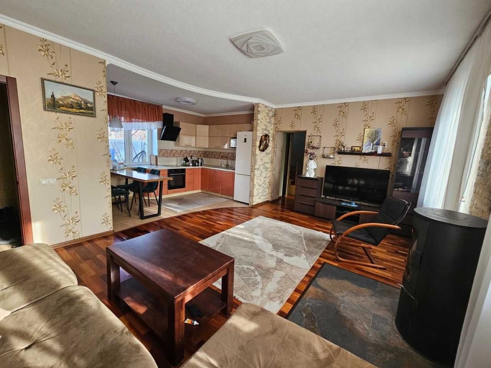 Площадь 99м2, спланирован как просторная кухня - гостиная, 3 спальни, гардеробная, с/у, капитальный чердак.