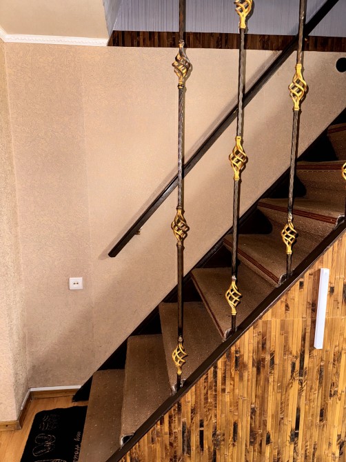 Дом 157 кв.м в двух уровнях. На первом этаже расположены холл, кухня-столовая с камином, с-уз, сауна, топочная, постирочная, гараж и подсобные помещения. Второй этаж 4 комнаты, 3 из которых- изолированные спальни.