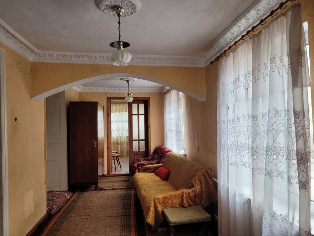Расположен на 10 сотках 80-х г.постройки в хорошем жилом состоянии общей площадью 134кв.м. В доме 5 комнат, кухня и санузел. Отопление АГВ. Во дворе летняя кухня с газом,гараж с подвалом, много хозпостроек.