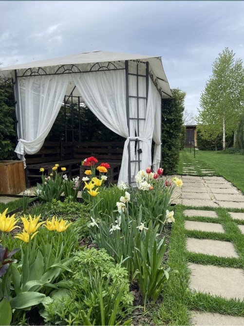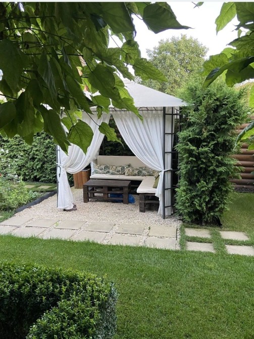 Дуже гарний сад, рідкісні рослини, штучний город, дитяча площадка, ландшафтний дизайн, автополив, вуличне освітлення, окремий хозблок, дві альтанки ( одна зимова з кухнею) .