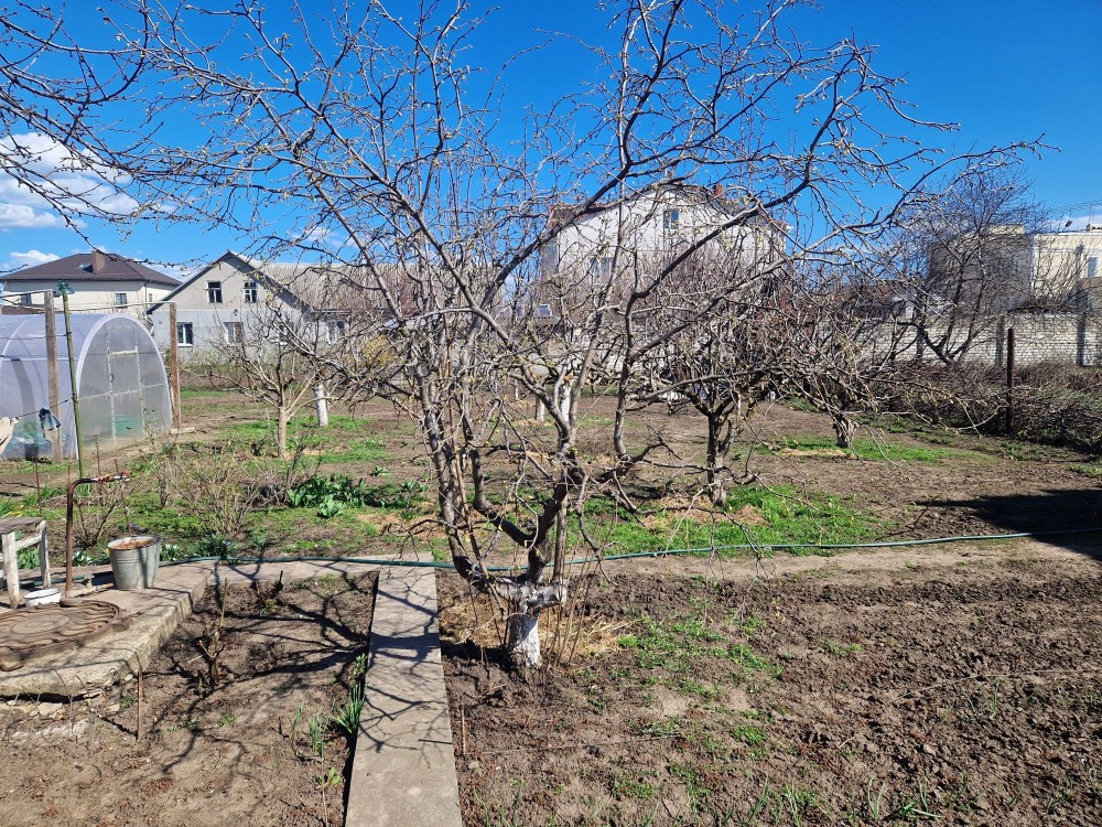Участок 12 соток, чистый и ухоженный, много плодовых деревьев и кустарников. На участке есть каменный сарай , на данный момент используется как курятник.