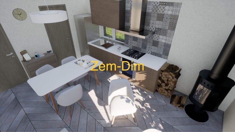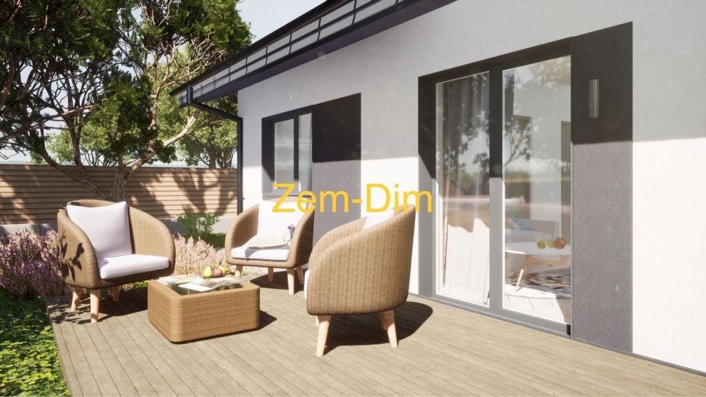 В комплект будинку входить: фундамент, залізобетонний каркас товщиною 160 мм (зовнішні та внутрішні стіни), дерев’яне перекриття з утеплювачем 200 мм, покрівля метало черепиця, водостічна система, вікна, фасад з утеплювачем 150 мм.