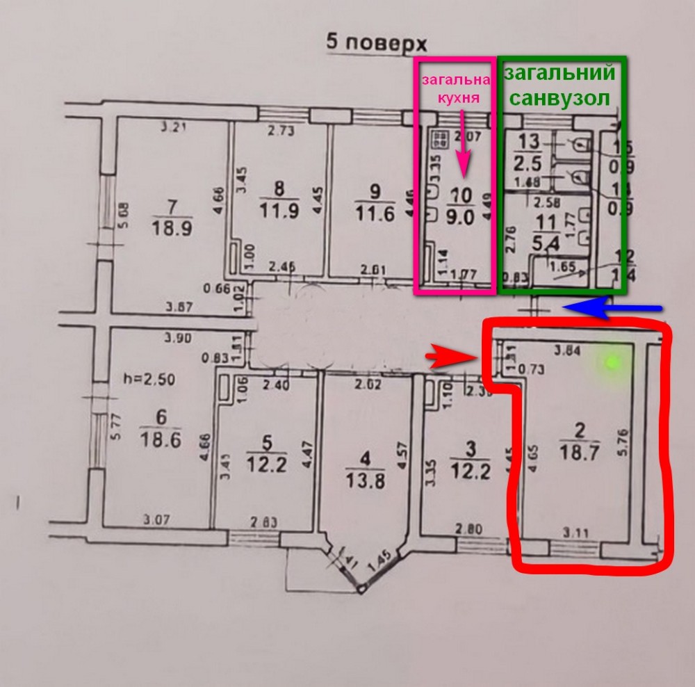 Продам комнату в общежитии по улице Молодежная. Сделан свежий ремонт, можно заходить без дополнительных вложений. Блок на четыре комнаты. Современная душевая кабина на четверых. Санузел на двоих. Отдельное место на кухне и под стиральную машину. Два общих балкона. Площадь 11.2 квадрата. Не угловая. Рядом с кухней, есть возможность завести воду в комнату. Также есть кладовая с возможностью сделать свою душевую или санузел. Можно выкупить соседнюю комнату, также в ремонте, такой же площади и соответствующей цене. 8.600 у.е.
