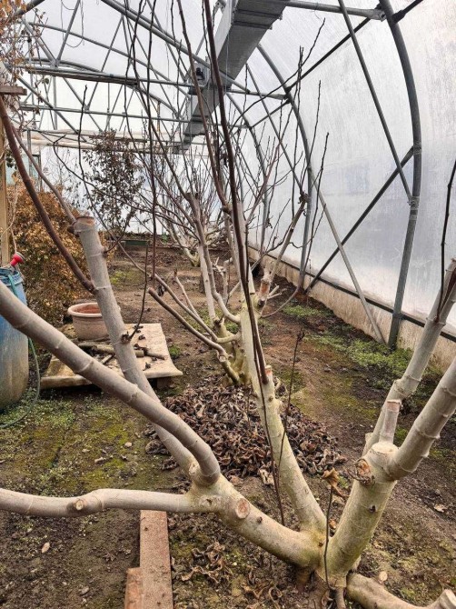 В теплице также растут кусты инжира, лимоны, апельсины и т д