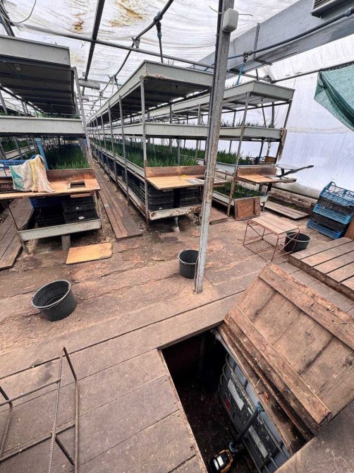 Посадочная площадь теплицы 220м2 включая трех ярусные стеллажи.