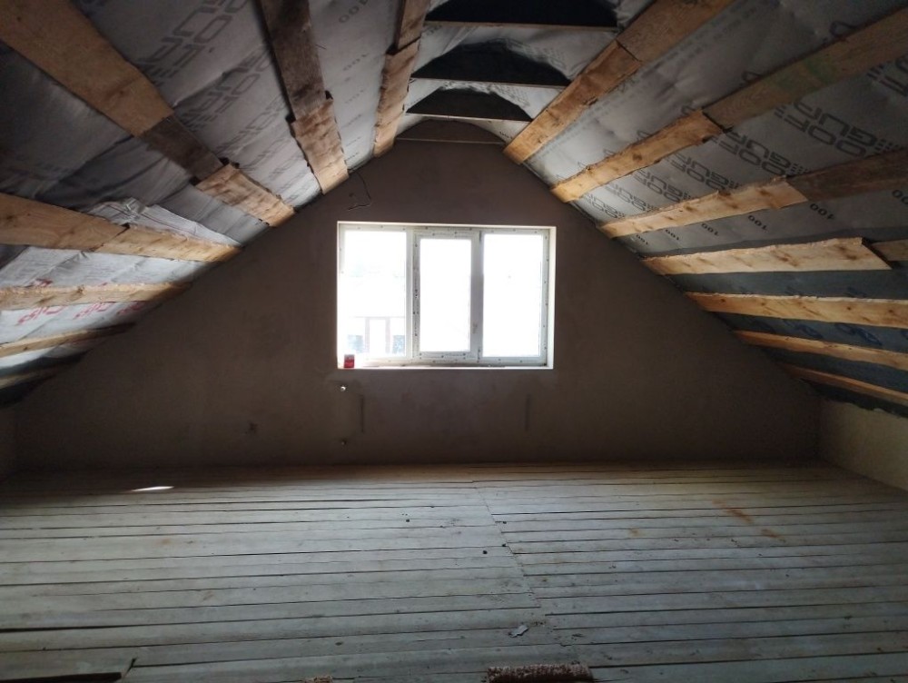 Стіни поштукатурені, електропроводка розведена, вікна Veka двокамерні, дах утеплений (мінвата 20 см), електроопалення 15 кВт.