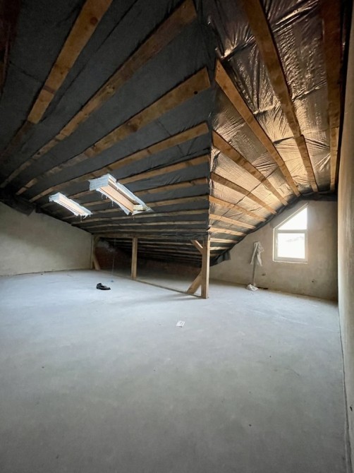 На другому 2 спальні кімнати та ванна кімната. На третьому поверсі великий нерозділений простір для реалізації ваших ідей. В котеджі утеплений дах (20 см мінвати), тепла підлога(1й поверх), 2х контурний газовий котел.