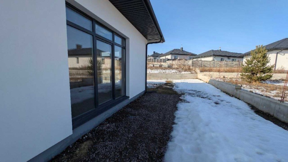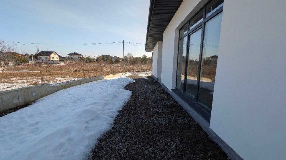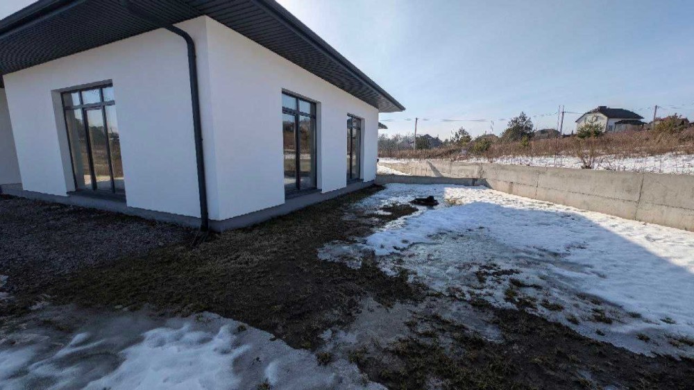 Пропонується сучасний одноповерховий котедж у спокійному масиві приватної забудови. Зручне розташування - до міста кілька хвилин, заселена вулиця, асфальтований доїзд.