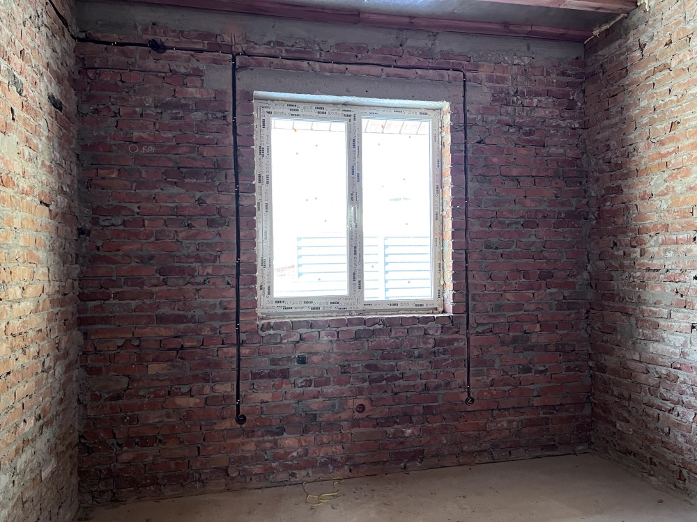 Будинок будувався як для себе)) - цегляні стіни, утеплення базальтовою ватою 100мм, вікна Rehau з найкращою фурнітурою, висота стель під чистову 3м, утеплення даху 300мм, бетонована основа відмостки на якій викладена бруківка, глибинна скважина, 24 кВт заведеної електрики, зручне планування й багато інших приємних й правильних особливостей!