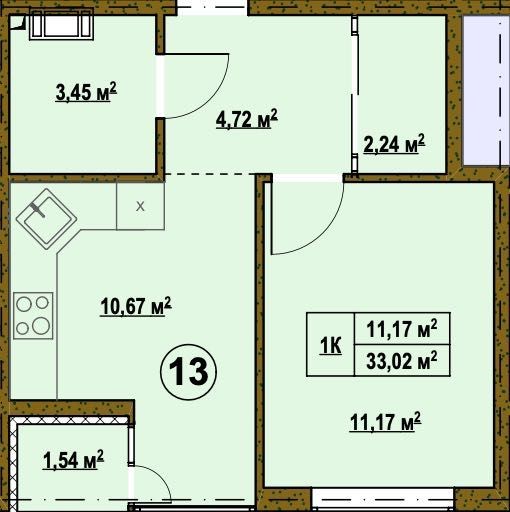 Загальна площа: 33,02 м²