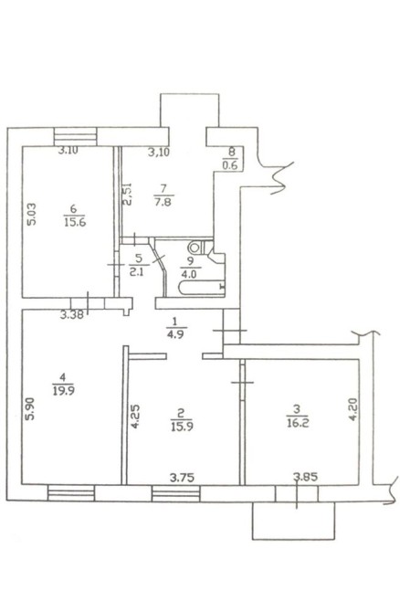 - 4 кімнати, площа 89 м2.