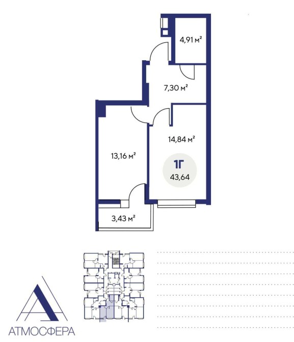 • Загальна площа 43.64 м2