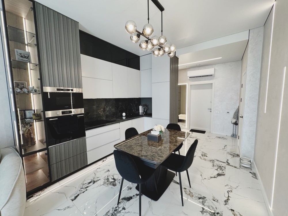 Продам видову квартиру в ЖК Бартоломео 51м2, 5/33поверх, кухня-вітальня + окрема спальня + гардероб, якісний ремонт (для себе), меблі, техніка. Комплекс преміум класу.