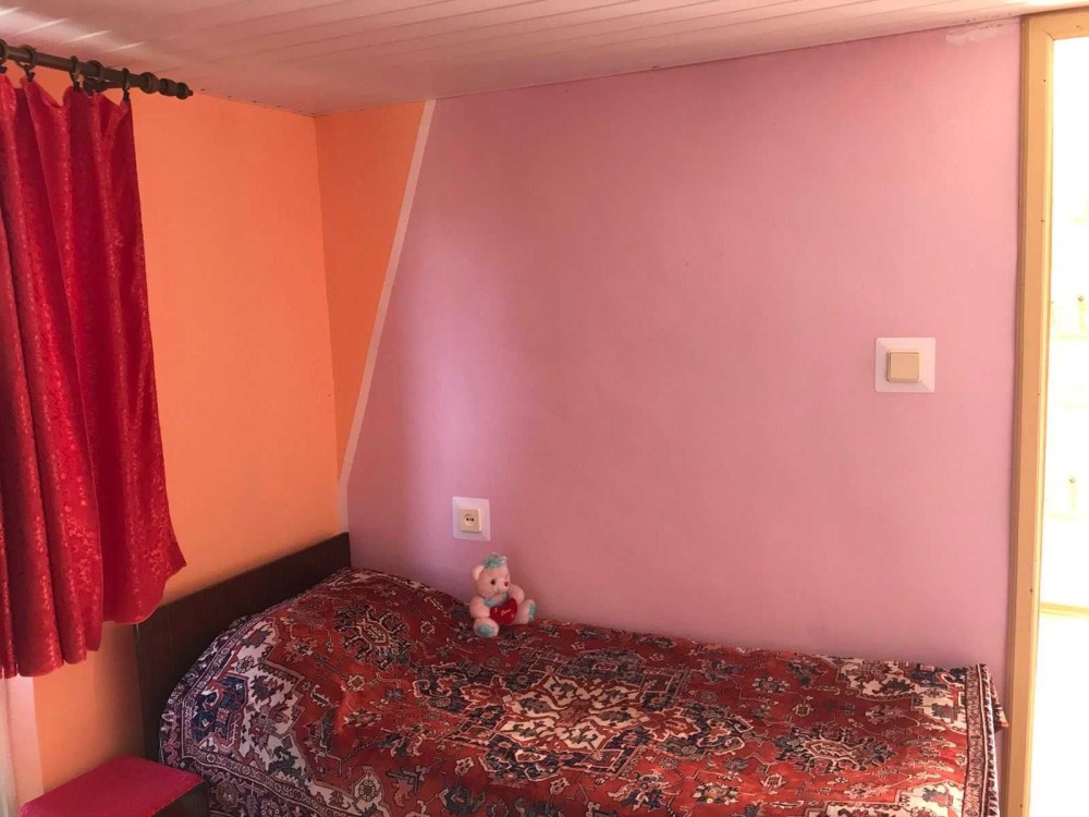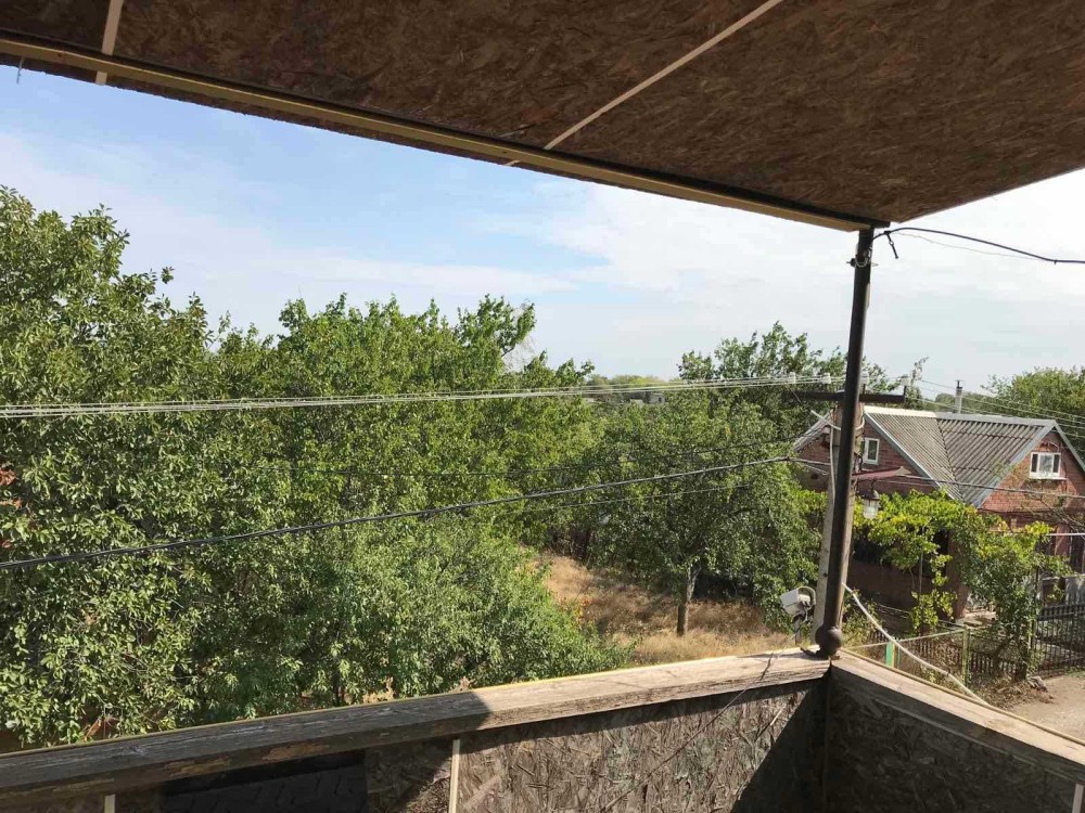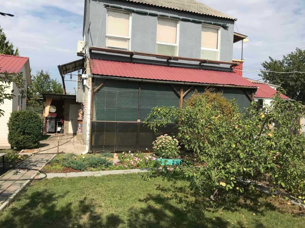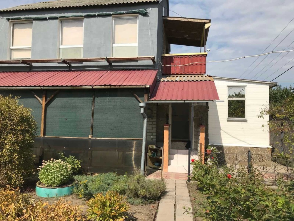 Продам 2-поверховий будинок 120м2 на ділянці в 6 соток. На ділянці поруч з будинком відкрита альтанка, закритий гостьовий будиночок на 10м2, мангал, душ, туалет (септик), парковка на один автомобіль. Під будинком цокольний поверх на всю площу споруди (з місцями зберігання консервації, насосна для подачі води в будинок і бойлер). У будинку на першому поверсі кухня, душова (душова кабіна, умивальник), передпокій з виходом на другий поверх і велика спальня, на другому поверсі дві кімнати, в одній є вихід на балкон, лаз на горище. с.Володимирівське Запорізька область кооператив Прибережний