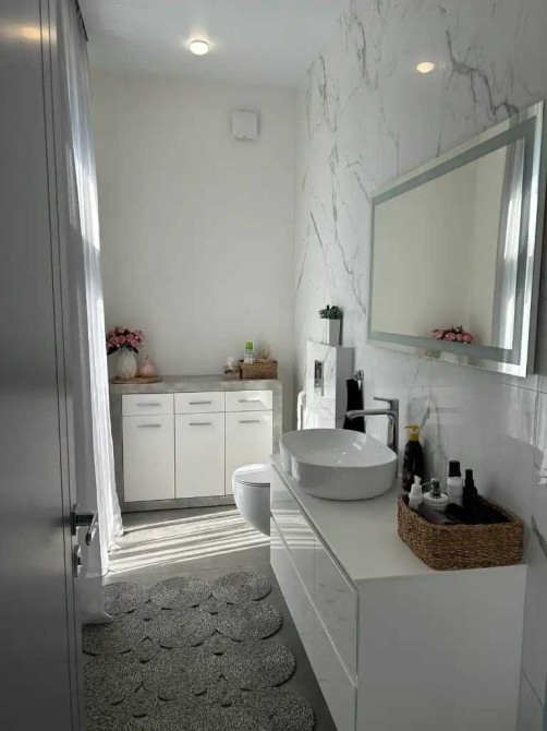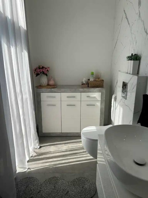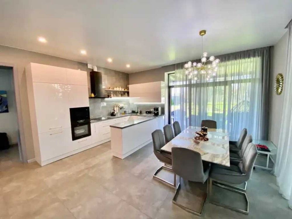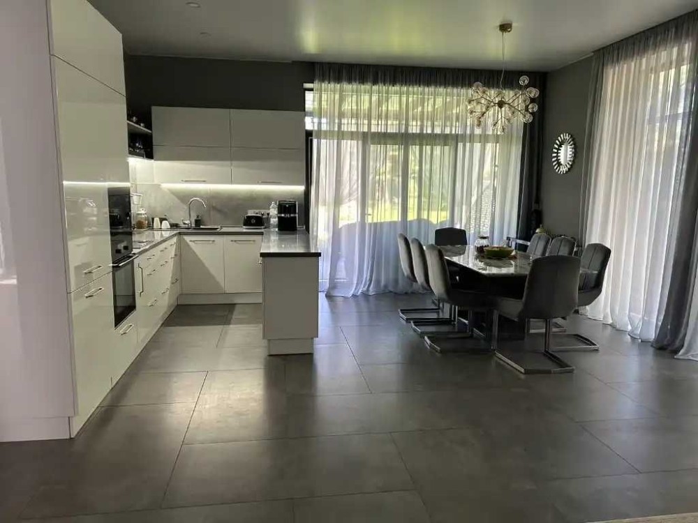 Коротко о наполнении: итальянская сантехника, дорогая мебель и техника на заказ, которая вся остается, полы с подогревом водяные по всему дому, плитка на полу, стены венецианская штукатурка ( гипсокартона нигде нет ), система фильтрации воды, медная проводка, бронированные и алюминиевые окна, бетонные перекрытия крыши, фундамент ленточный 1.40, стены газобетон 400мм, утеплитель обработанный пенопласт 100мм. Со всех сторон приятное соседство новостроек.
