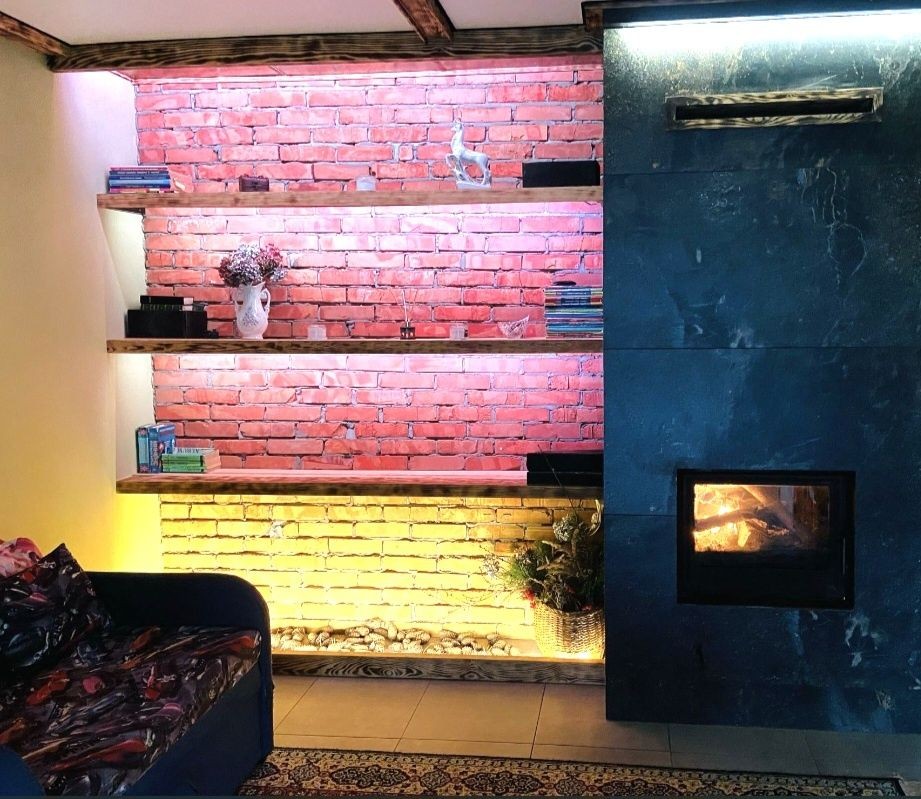 По всему первому этажу — водяной тёплый пол (дом остаётся тёплым даже при отключении электроэнергии)