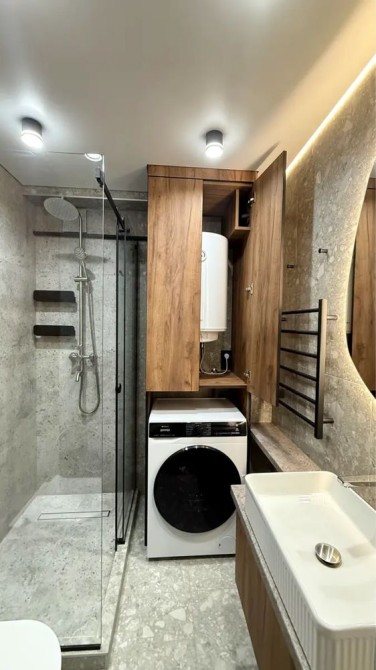 Декілька рівнів освітлення, головне світло та всюди led світло, в стелі та на дзеркалах.