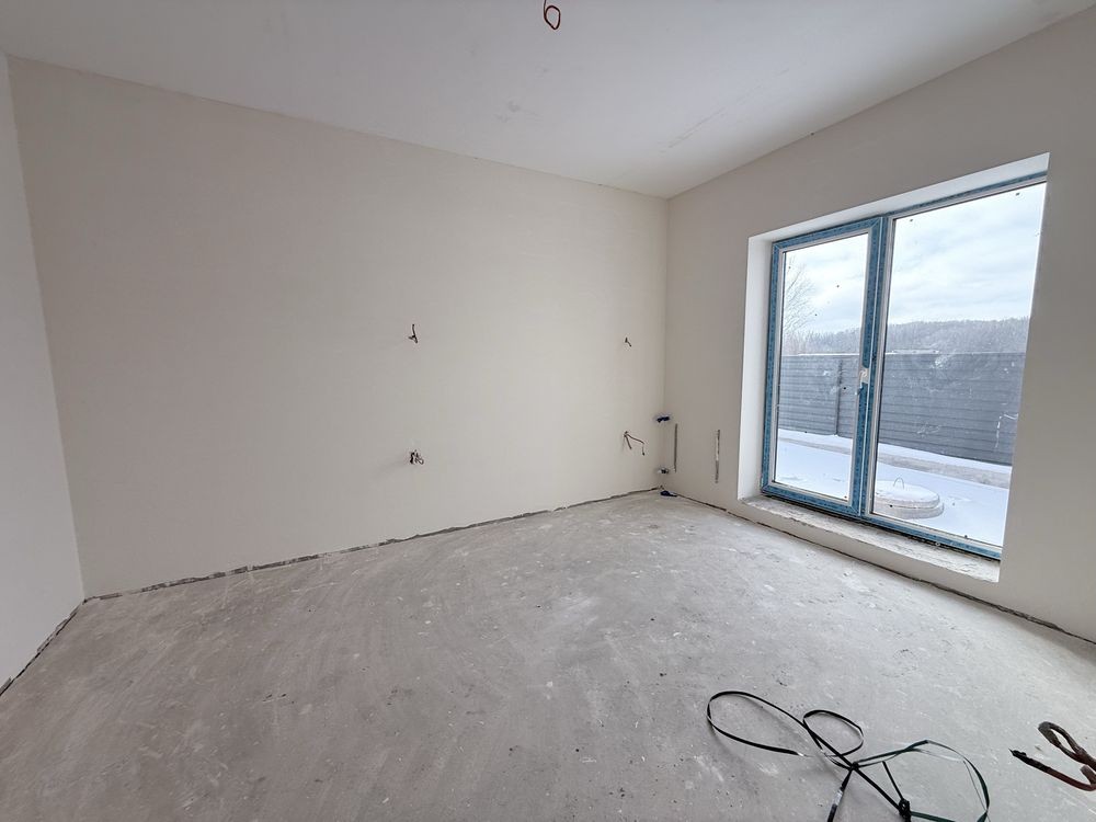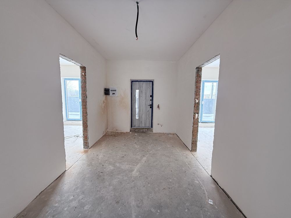Зручне планування включає прихожу, просторий коридор, три світлі кімнати, кухню-студію, бойлерну та один суміжний санвузол.