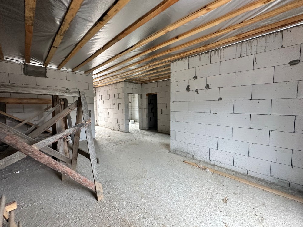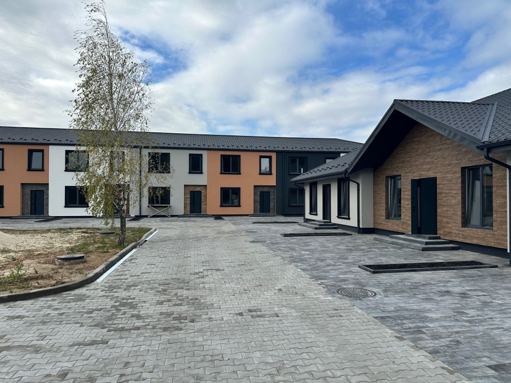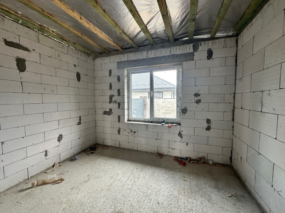 Планування максимально зручне: три кімнати, два санвузли та простора кухня-вітальня з виходом на власне подвір’я. Є місце для відпочинку на свіжому повітрі та власна парковка на два автомобілі.