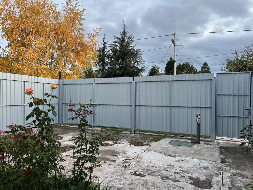 Територія рівна, повністю огорожена забором.