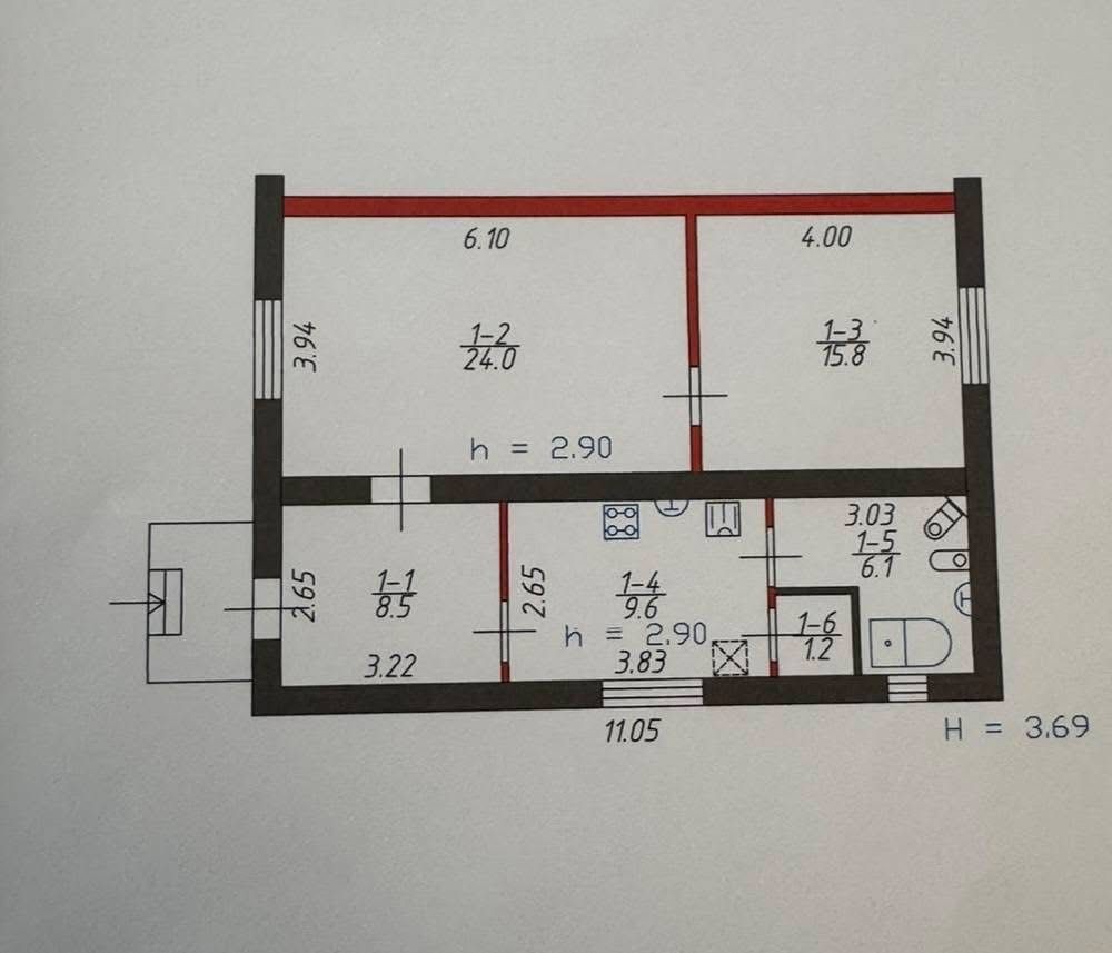 • Трикімнатна