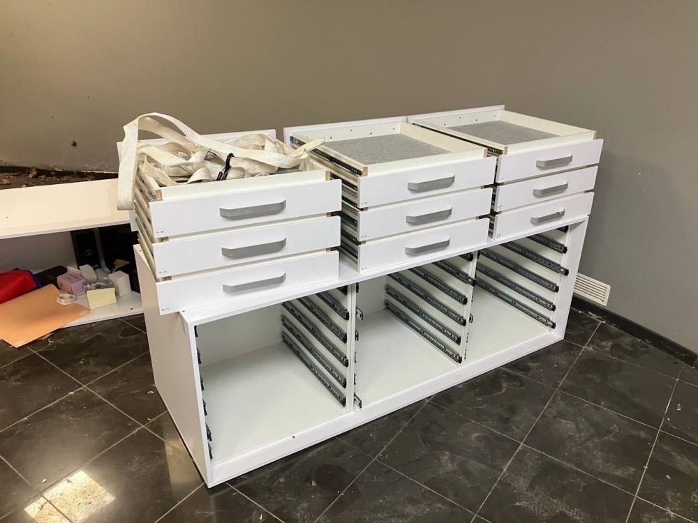 Верхнее и нижнее перекрытия усилены конструкцией рамы с веерным расположением швеллера (14 см) через каждые 60 см. При этом высота чистого потолка около 3 метров.