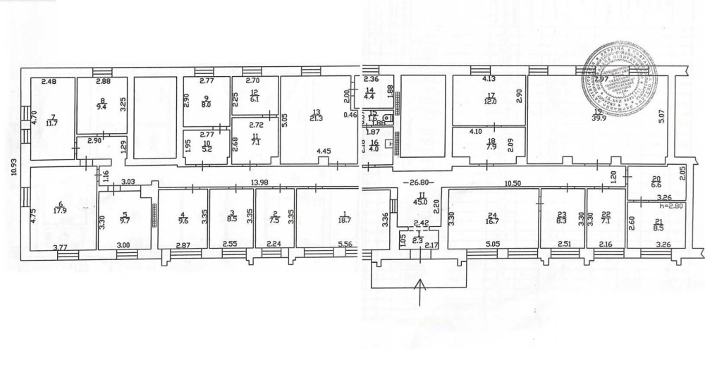 Продам комерційне приміщення в Крюкові, провулок Тополевий, 1/3 поверх у житловому будинку, колишнє приміщення суду, площа - 305 м2, увесь перший поверх(за виключенням однієї квартири), високі стелі, лічильник на опалення (замінені всі труби опалення), без ремонту.