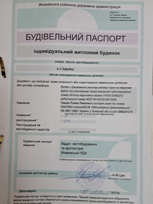 Продається просторий недобудований будинок у селі Зарудці Львівській області, Львівський район, всього 15 км від Львова. 5км до Куликува Мальовнича тиха місцевість — до лісу лише 150 метрів Площа будинку: 250 м² Площа ділянки: 0,075 га (7,5 соток) Будинок збудований зі шлакоблоків та цегли має велику площу та хороший потенціал планування — чудовий варіант для заміського проживання або для тих, хто хоче завершити будівництво під себе та жити неподалік від міста в екологічно чистій зоні. . Комунікації: світло підключене, вода, септик; газ проходить поруч біля будинку Є повідомлення про початок будівельних робіт . Ціна: 60 000 $ — вигідна ціна для 250 м² біля Львова. Можливий аргументований торг при огляді. 09*********58 — Роман